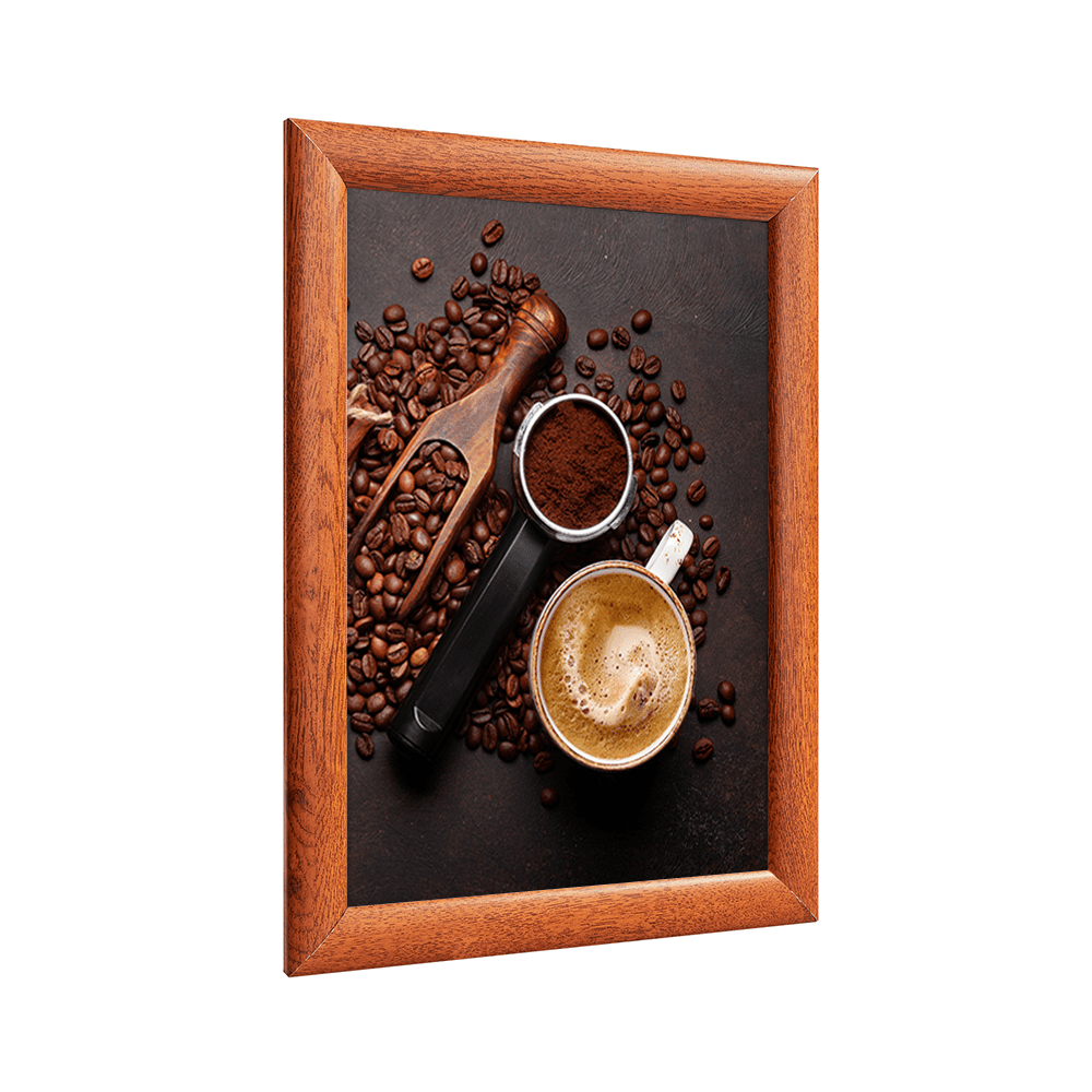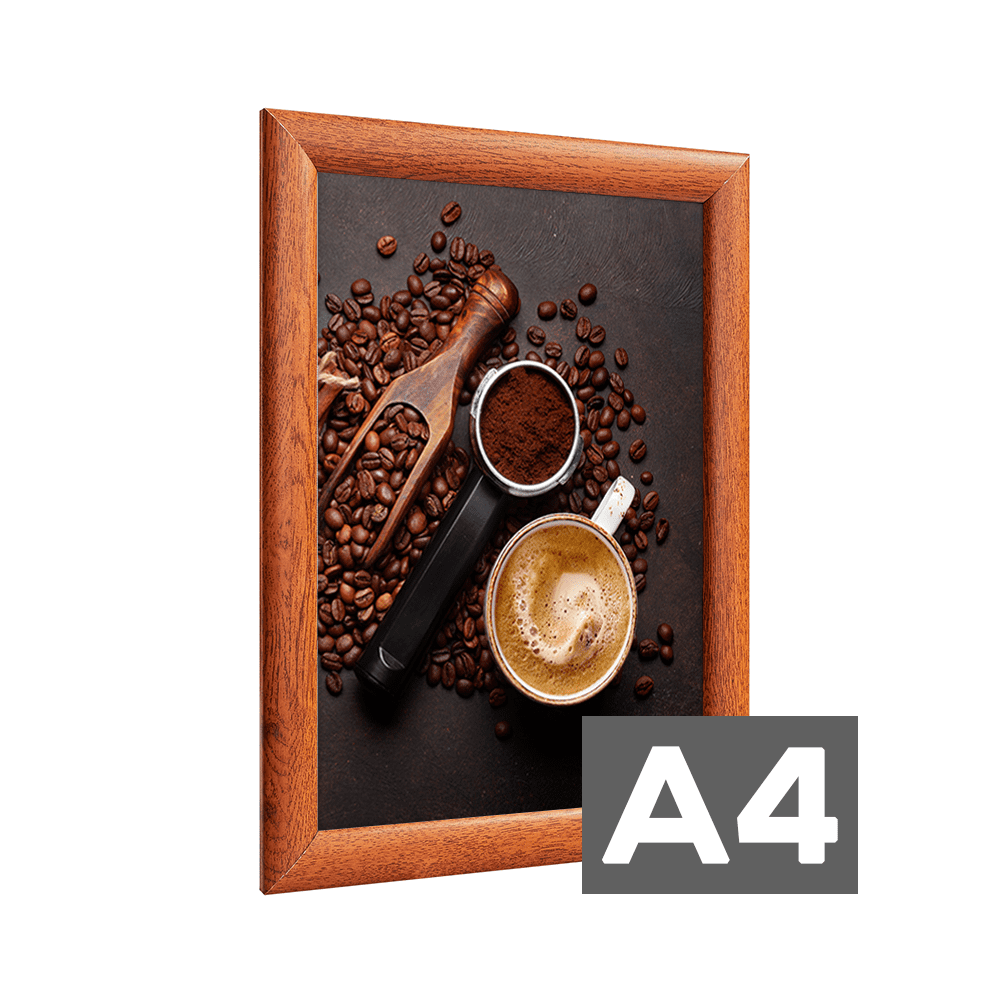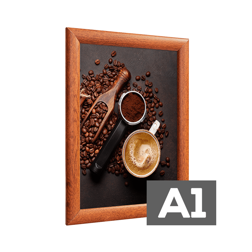 Alu Klapprahmen mit einer hochwertigen 25mm Profilbreite in natürlicher Holzoptik – ideal für eine stilvolle Präsentation Ihrer Poster, Bilder und Drucke. Dank der