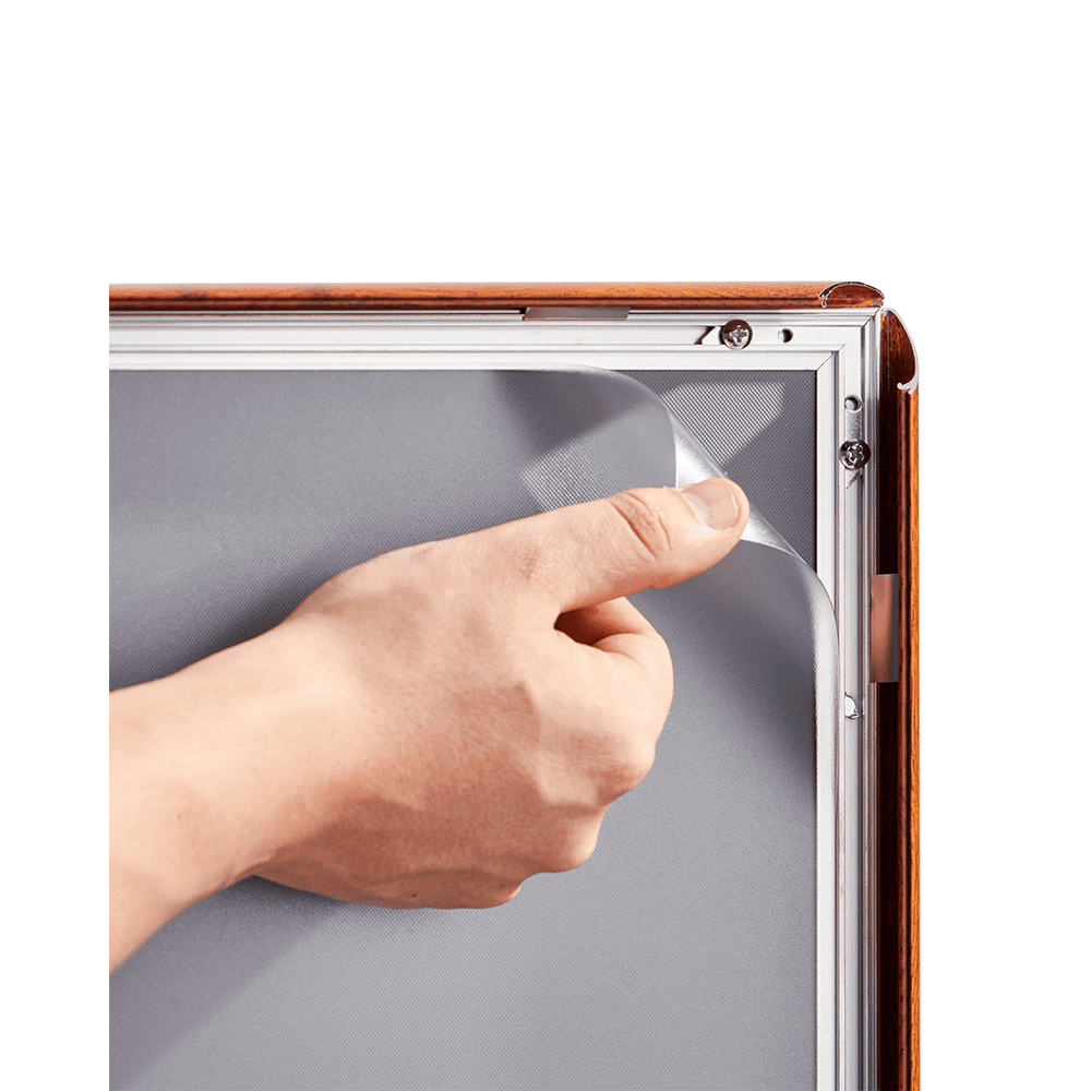 UV-beständigen Antireflex-Schutzfolie sind Ihre Inhalte optimal vor Sonnenlicht geschützt und spiegeln nicht, was eine klare Sicht aus jedem Blickwinkel gewährleistet. Die schlagfeste Rückwand aus Polystyrol sowie die schlichten Gehrungsecken sorgen für Stabilität und eine dezente Ästhetik.
