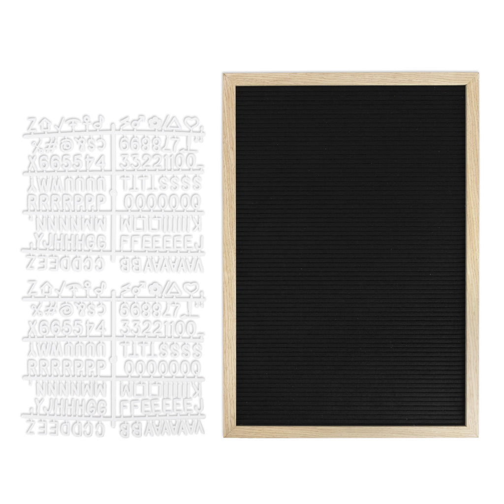 Dekorative Buchstabentafel mit Holzrahmen inkl. Wandmontageset & 256 Acryl-Buchstaben, Zahlen und Symbolen