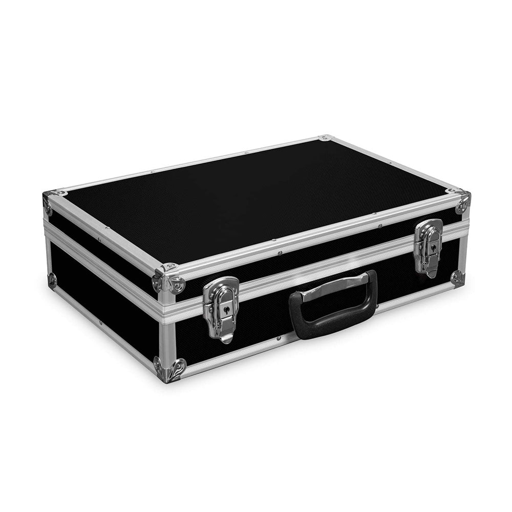 • Koffer: Aluminium, schwarz/silber, mit Schloss & Schlüssel
