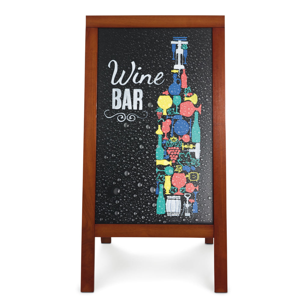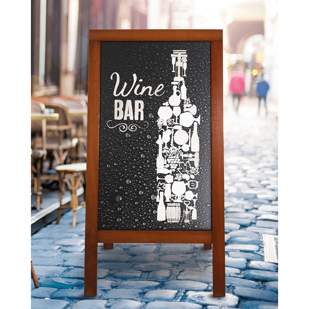 Dieser wetterfeste Holz Kundenstopper ist die ideale Wahl für die Gastronomie im Freien. Ob Tagesmenüs, Happy-Hour-Specials, Öffnungszeiten oder besondere Events – die grosszügige Kreidetafel mit 100,5 x 58 cm Fläche gibt dir genügend Raum, deine Botschaften klar und einladend zu präsentieren. Für zusätzliche Wirkung kannst du die Fläche mit individueller Folienbeschriftung kombinieren, sodass deine Werbung noch mehr ins Auge fällt.