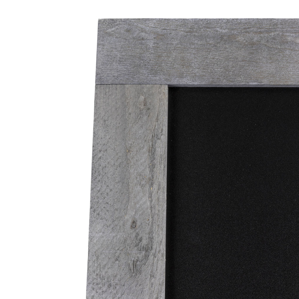 Der robuste Holzrahmen in rustikalem Grau ist für den Innen- und Aussenbereich geeignet. Zwei Scharniere am oberen Ende verbinden die beschriftbaren Tafeln sicher und ermöglichen ein einfaches Auf- und Zuklappen. Eine rostfreie Abstandskette sorgt für optimale Aufstelltiefe und sicheren Halt. Die schwarze Kreidetafel mit einer Fläche von 67 x 47 cm bietet dir ausreichend Platz, um deine Botschaften kreativ und sichtbar zu gestalten.