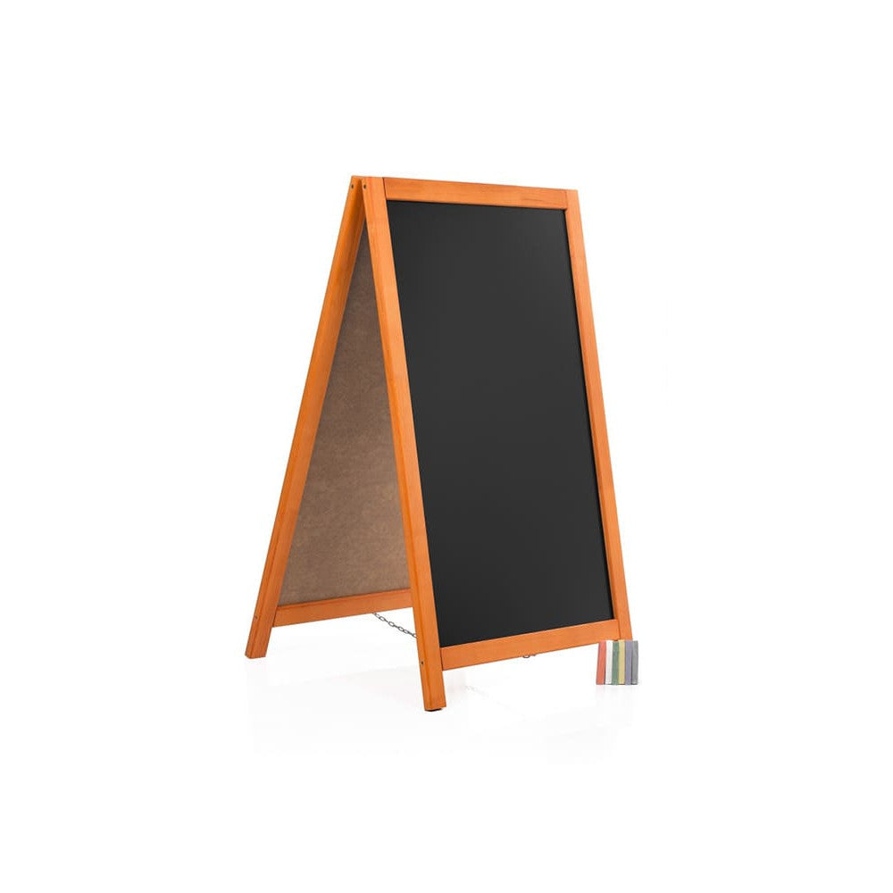 Doppelseitig beschriftbarer Holz Kundenstopper günstig online kaufen. Geeignet für Gastronomie, Einzelhandel, Ateliers, Zuhause, etc. Dank der speziell beschichteten Tafeloberfläche lässt sich die Kreidetafel leicht beschriften und wieder reinigen für abwechslungsreiche Angebote, Menüs, Werbebotschaften und vieles mehr.