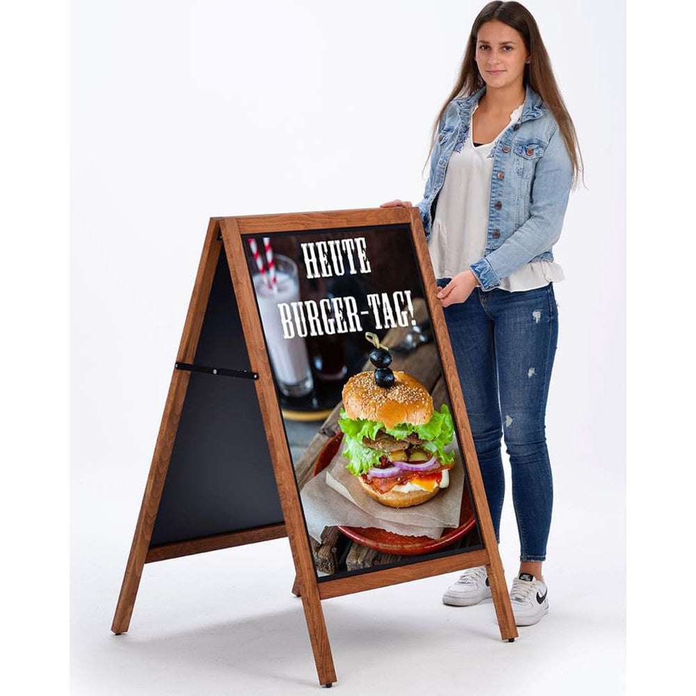 Holz Kundenstopper DIN A1 – Magnetisch, Dunkelbraun, Outdoor