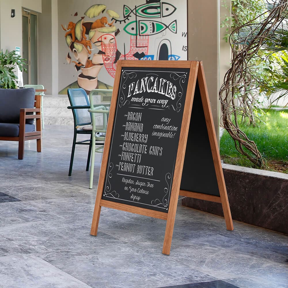 Ob als Menütafel vor deinem Restaurant, als Werbetafel im Eingangsbereich oder als flexibles Infoboard – der magnetische Holz Kundenstopper 95×54 cm Dunkelbraun verbindet natürliche Eleganz mit praktischer Vielseitigkeit. Ideal für alle, die ihre Werbung wetterfest, kreativ und professionell präsentieren möchten.