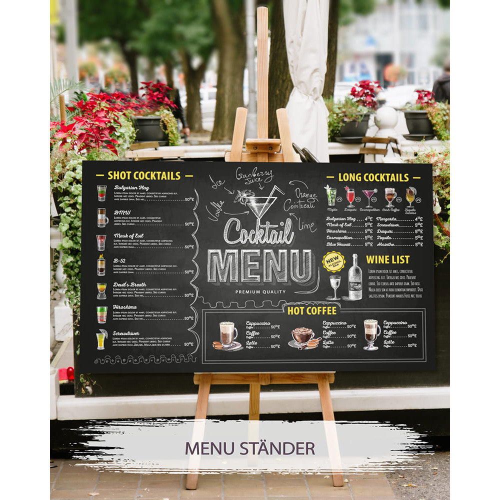 Ob in Restaurants, Cafés, Hotels oder bei Veranstaltungen – die Staffelei ist perfekt, um Menüs, Angebote oder Begrüssungen auf Kreidetafeln in Szene zu setzen. Künstler nutzen sie, um ihre Werke auszustellen, und in Schulen oder Workshops ist sie eine praktische Unterstützung für Unterricht und kreative Projekte. Dank der verstellbaren Halterung lassen sich verschiedene Formate sowohl im Hoch- als auch im Querformat präsentieren.