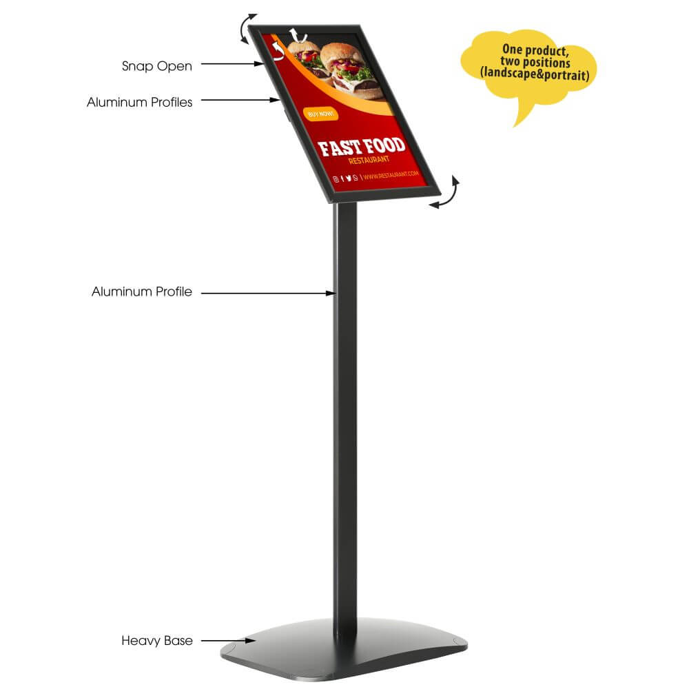 Ein weiteres Highlight ist der ergonomische Griff auf der Rückseite des Klapprahmens, mit dem du die Ausrichtung zwischen Hoch- und Querformat besonders leicht und komfortabel verstellen kannst. So kannst du deine Präsentation im Handumdrehen anpassen – ideal für wechselnde Inhalte oder häufig aktualisierte Informationen.