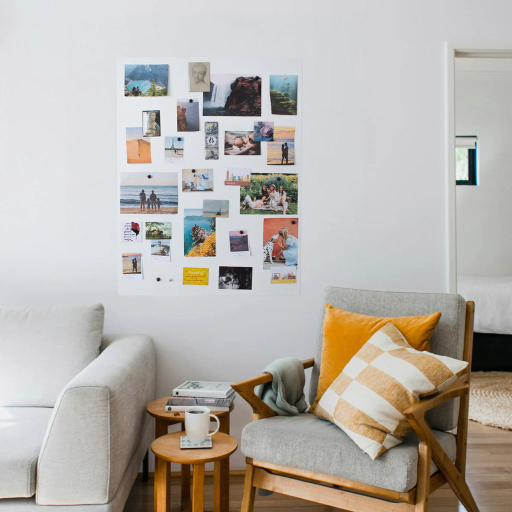 Die pulverbeschichtete Stahloberfläche ist sowohl magnetisch als auch beschreibbar. Notizen, Einkaufslisten, Termine, Menüs oder kreative Zeichnungen lassen sich problemlos mit klassischer Kreide oder Flüssigkreidemarkern umsetzen. Fotos, Erinnerungen oder Dokumente können zusätzlich mit Magneten befestigt werden – ideal für eine flexible und übersichtliche Organisation im Alltag.