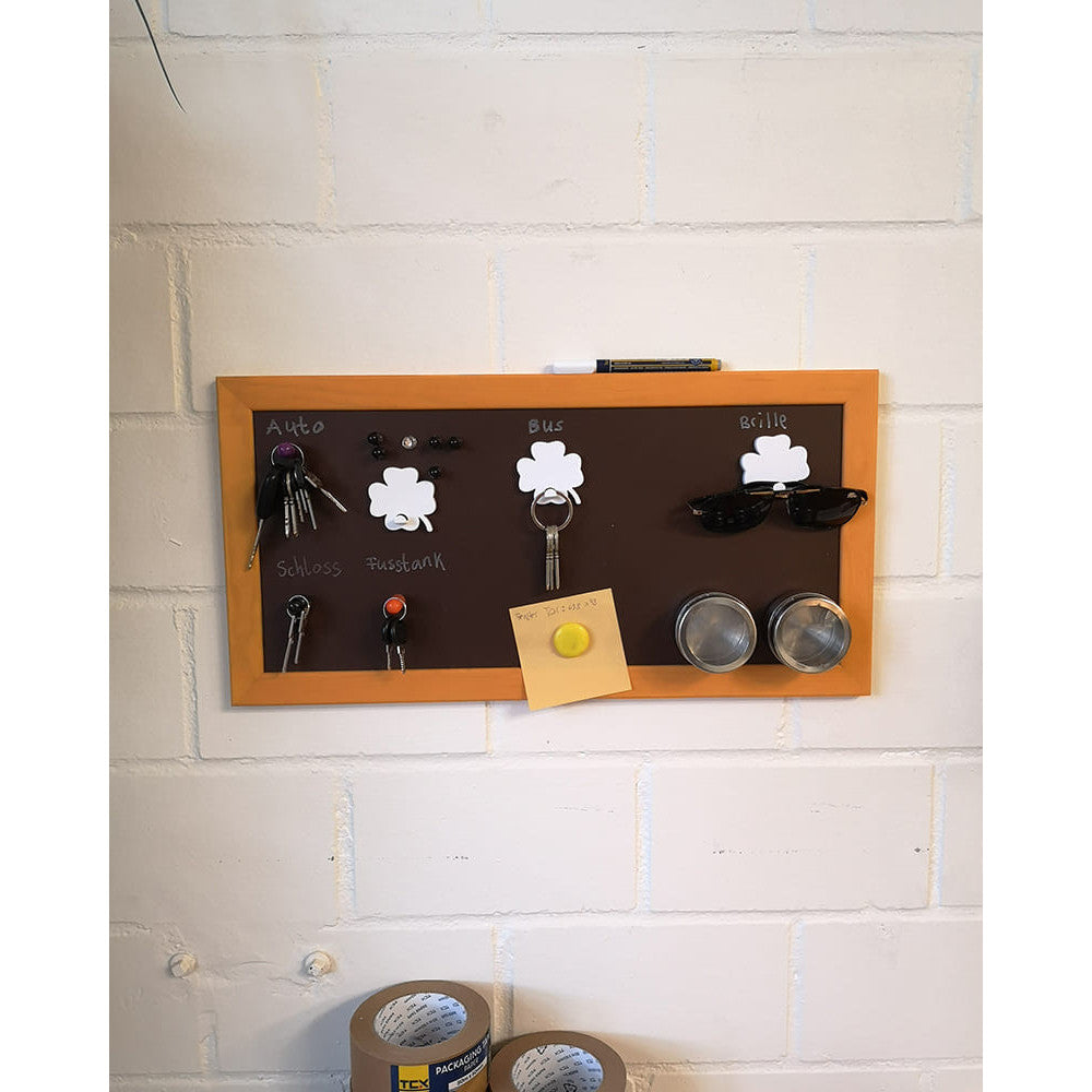 Die dunkelbraune Tafelfläche ist beschreibbar mit Kreide oder Flüssigkreidemarkern (z. B. von Securit®) und gleichzeitig magnetfreundlich, sodass du Fotos, Schlüssel, Pläne oder kleine Accessoires flexibel befestigen kannst. Ob als Notiztafel, Pinnwand, Küchenwandtafel oder Wandorganizer – diese Magnettafel ist vielseitig einsetzbar.