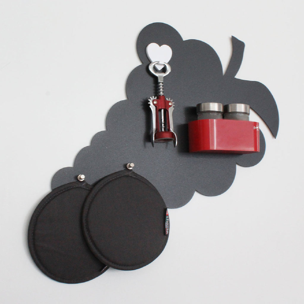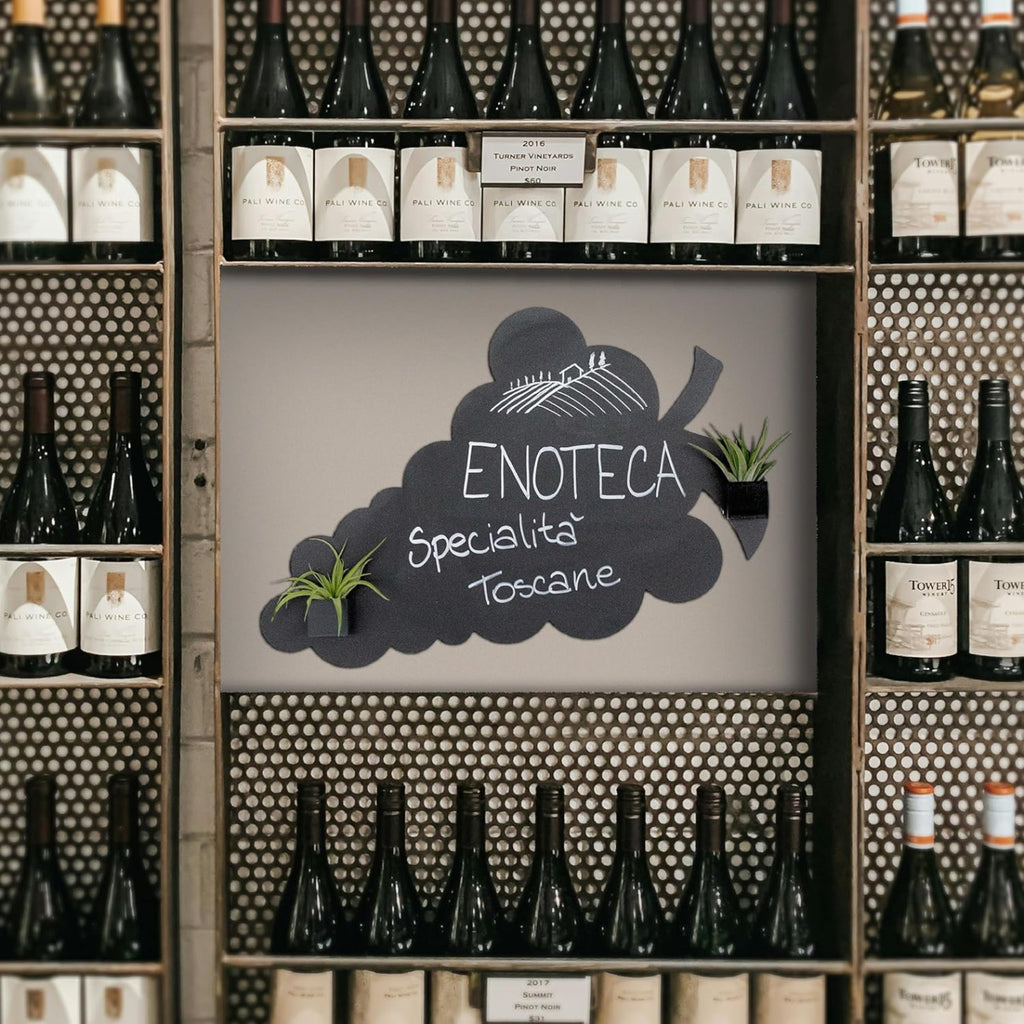 Die magnetische Kreidetafel in Form einer Traube von KalaMitica® verbindet originelles Design mit praktischer Funktionalität. Mit ihrem eleganten Anthrazit-Ton wird sie zum Blickfang in der Küche, im Kinderzimmer, im Büro oder als thematische Dekoration in Weinhandlungen, Bars und Restaurants.