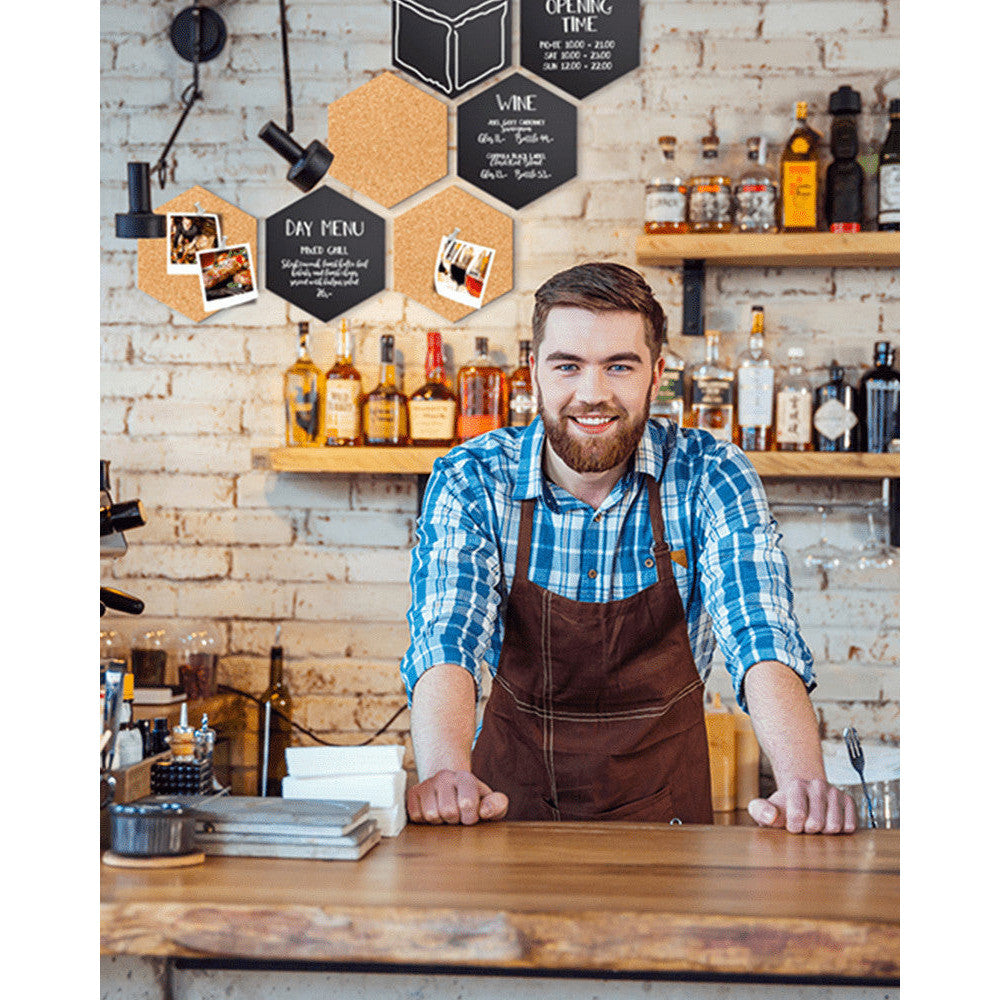 Securit® Wandkreidetafel & Kork Silhouette Hexagon, 7er-Set, 20×23 cm