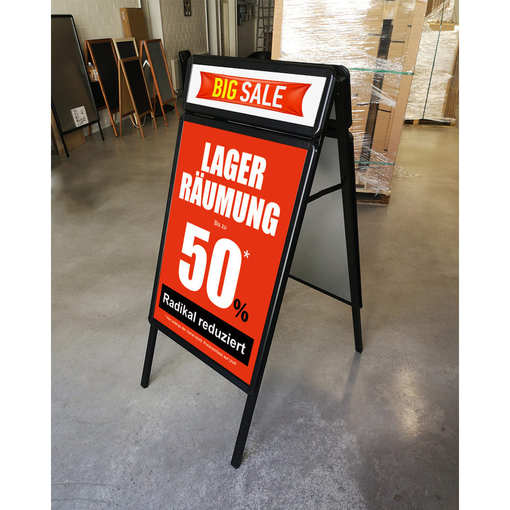 Kundenstopper Alu Classic mit Logoschild, DIN A1, Schwarz, Outdoor
