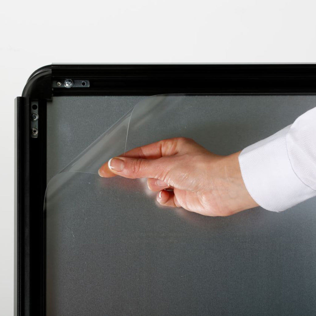 In der Handhabung ist der schwarze Alu-Classic denkbar einfach: Rahmen öffnen, Folie entnehmen, Plakat einlegen, Folie wieder einsetzen, Rahmen schliessen – fertig ist Dein professioneller Werbeauftritt am gewünschten Standort.
