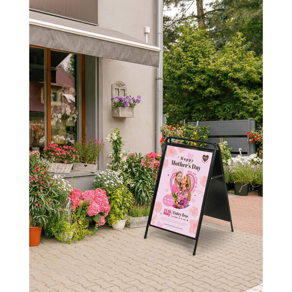 Das Besondere: 2-in-1-Funktion – entweder nutzen Sie die mitgelieferten UV-beständigen Antireflexfolien mit Magnetrahmen zur Präsentation von A1-Postern, oder Sie entfernen die Folien und beschriften die Hauptfläche direkt mit Kreidemarkern. So bleibt der „Stelo“ flexibel in der Anwendung – ob für Angebote, Speisekarten oder Events.