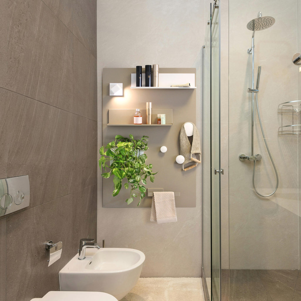 Die matte Oberfläche in Beige ist robust und langlebig, gefertigt aus pulverbeschichtetem Metall mit gerundeten Ecken. Mit einem Gewicht von rund 8 kg überzeugt die Tafel durch ihre Qualität und Stabilität – selbstverständlich 100 % Made in Italy.