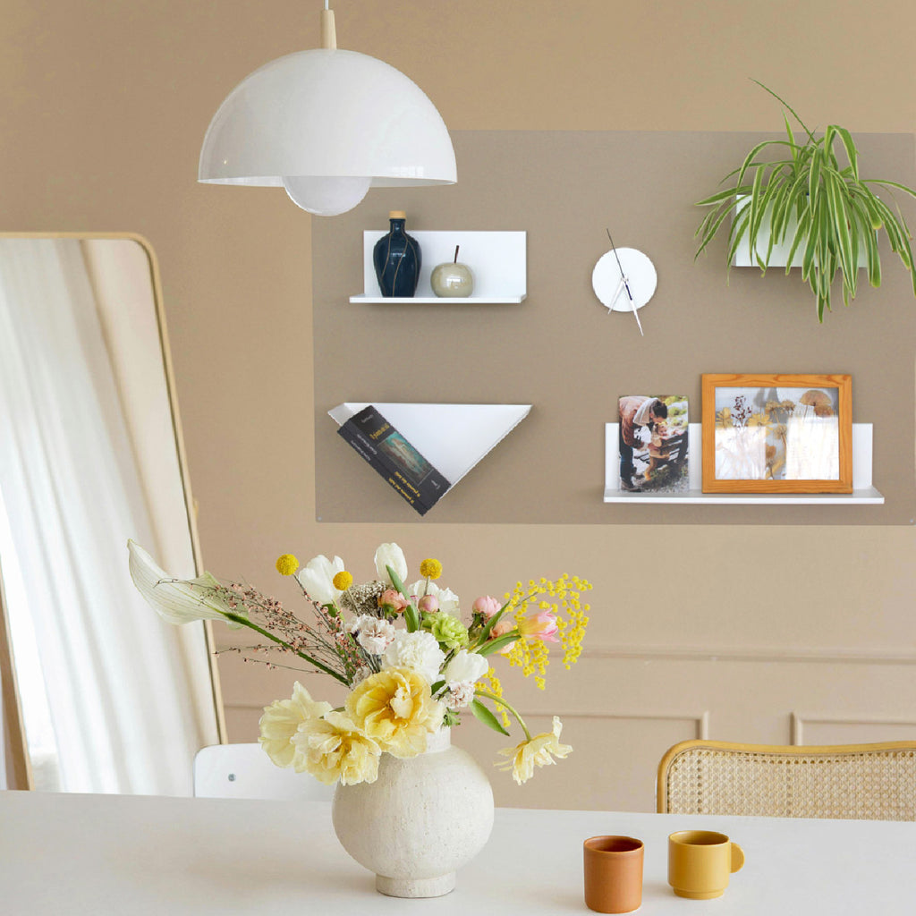 Die Kreidetafel ist beschreibbar mit Kreide oder Flüssigkreidemarkern (z. B. von Securit®) und gleichzeitig magnetfreundlich. So kannst du Notizen, Einkaufslisten, Bilder, Schlüssel oder Accessoires flexibel befestigen und jederzeit neu anordnen.