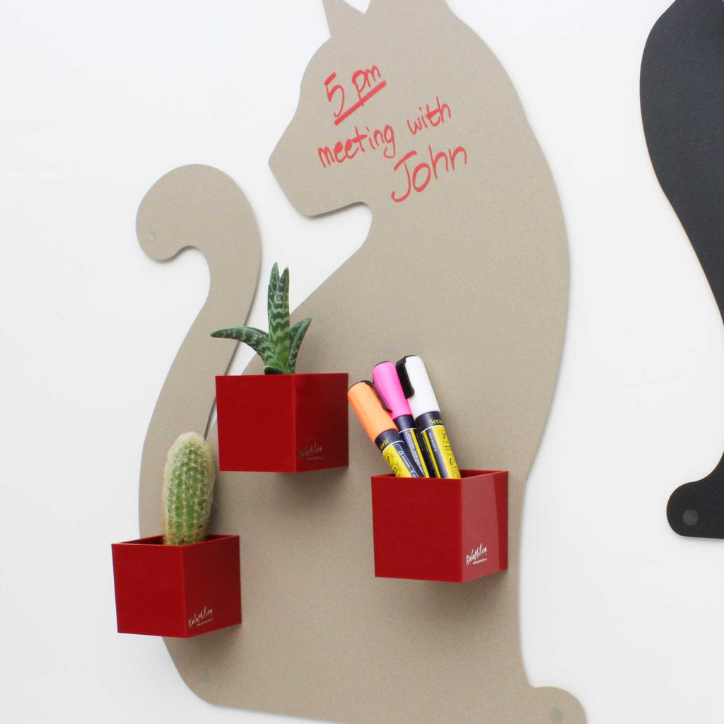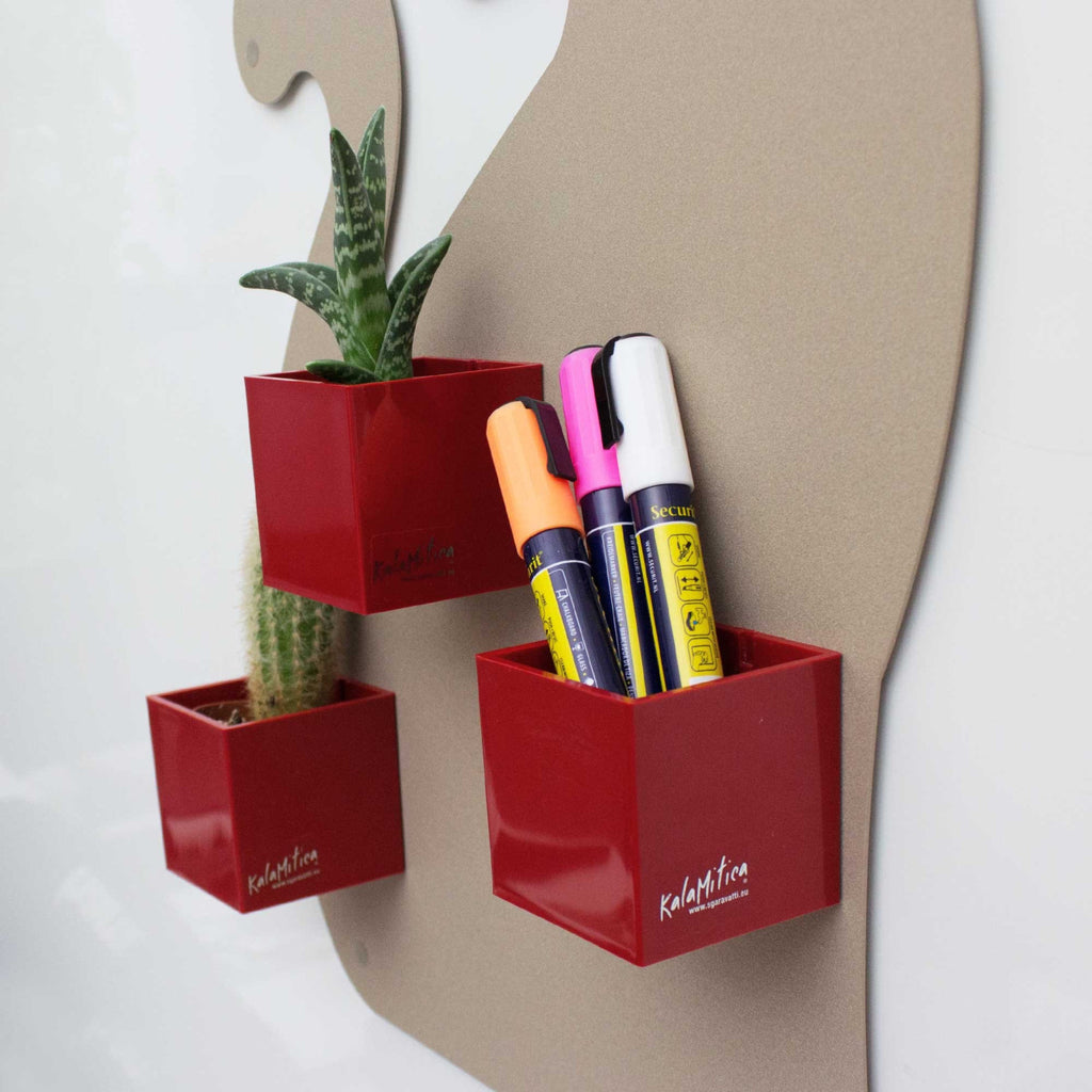 Setze farbenfrohe Akzente mit den magnetischen Würfelbehältern von KalaMitica® in Rot. Mit einer Grösse von 6 × 6,5 × 6,5 cm und ca. 100 g Gewicht pro Würfel bieten sie dir die perfekte Lösung, um Stifte, Scheren, Büroklammern oder Tacker übersichtlich aufzubewahren – oder um als stylische Blumentöpfe für kleine Pflanzen zu dienen.