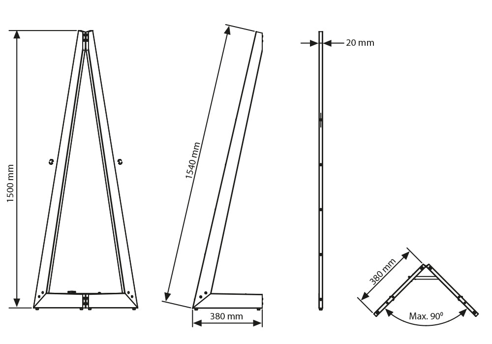 Dank der fünffach verstellbaren Höhe lässt sich die Präsentationsfläche flexibel anpassen – egal ob für kleine A3-Poster oder grosse A1-Rahmen. Die Staffelei ist leicht, platzsparend zusammenklappbar und dadurch optimal für den mobilen Einsatz.