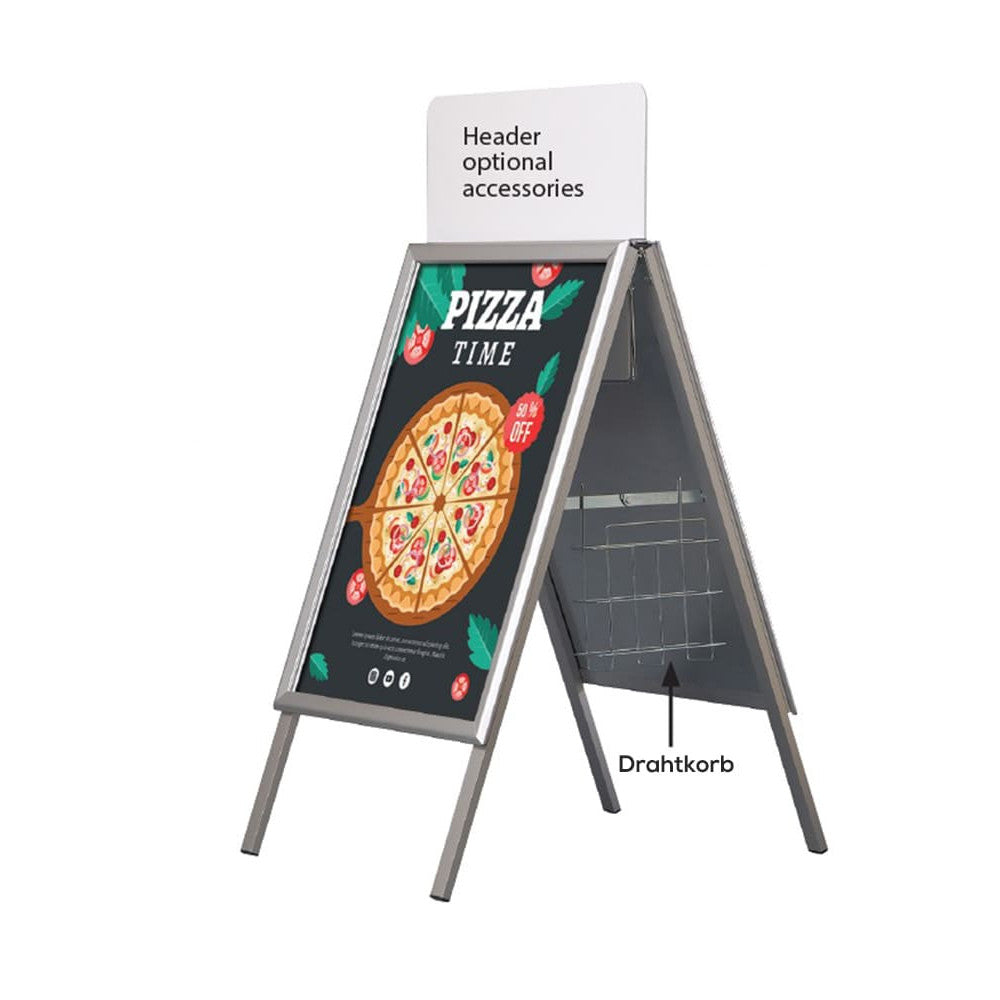 Gehwegaufsteller mit noch mehr Werbung und geben einen Grund, um wieder zu kommen. Der Drahtkorb ist in drei verschiedenen Grössen erhältlich und kann auf der Seite leicht angehängt werden. Er hat reichlich Fülltiefe und einen edlen Gitterlook. Optional bieten wir Ihnen auch einen geschlossenen Anhänger, die