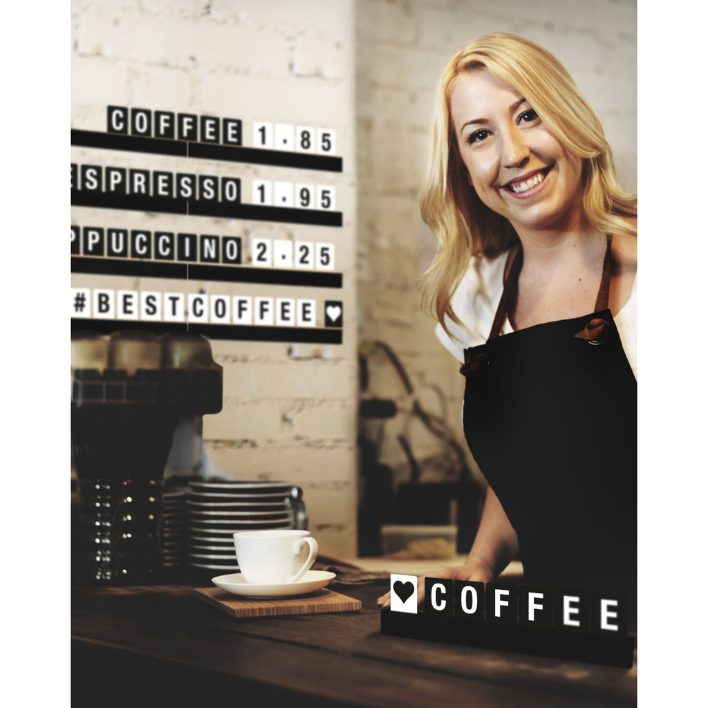 Im Lieferumfang enthalten sind 169 doppelseitige Buchstaben-, Zahlen- und Symbolkarten. Dies ermöglicht Ihnen grenzenlose Kreativität, um klare Botschaften zu übermitteln, saisonale Angebote hervorzuheben oder einfach nur eine inspirierende Atmosphäre zu schaffen. Die doppelseitigen Karten bieten Ihnen noch mehr Möglichkeiten zur Anpassung, sodass Sie immer die perfekte Präsentation gestalten können.