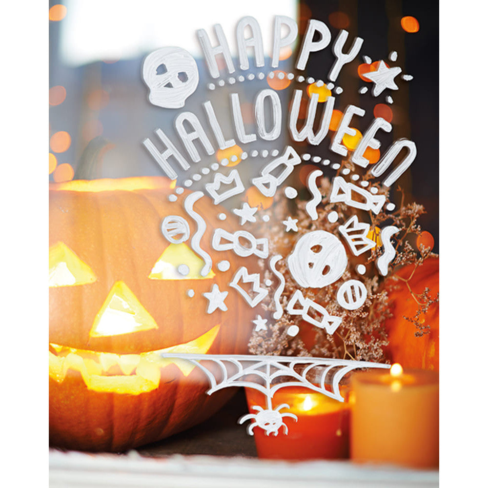 Marke: Securit® Verpackungseinheit: 3er Set Schablonen, Thema Halloween Anwendung: Geeignet zum Nachzeichnen auf Fenster, Kundenstopper, Kreidetafeln, Boards, etc. mit coolen Halloween Motiven