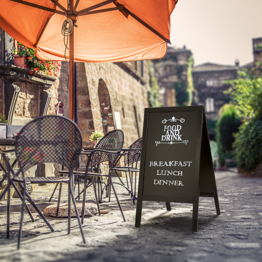Ob Tagesmenüs, Happy-Hour-Angebote, Öffnungszeiten oder Eventhinweise – dieser beidseitig nutzbare Aufsteller macht deine Werbung für Passanten sofort sichtbar. Besonders in der Gastronomie, aber auch im Einzelhandel oder bei Events ist er ein unverzichtbarer Blickfang.