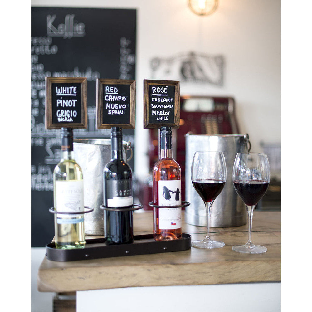 Tischkreidetafel mit Flaschenhalter für 3 Flaschen