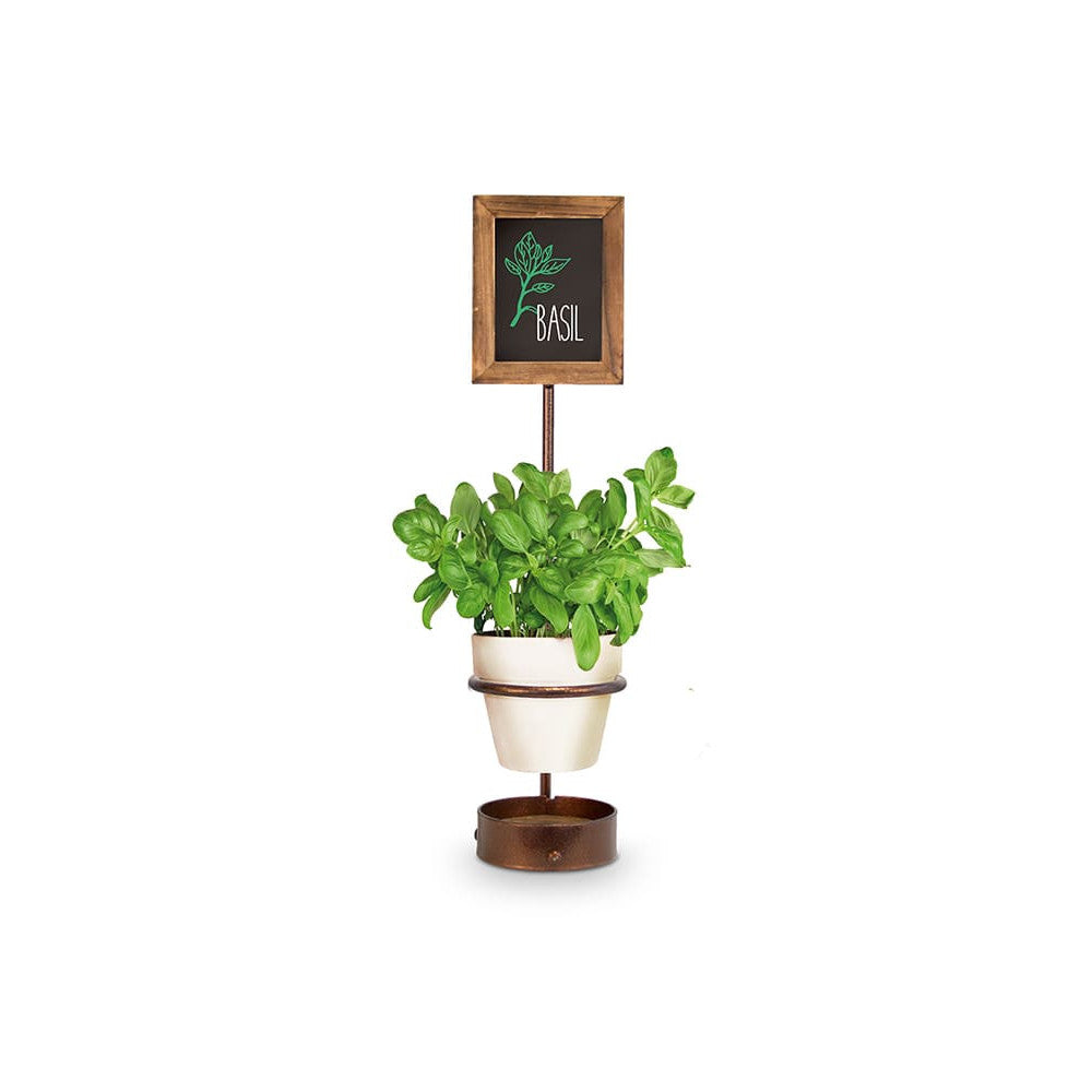 Edler Flaschenhalter mit Kreidetafel zum Beschriften von Weinen, Säften, Pflanzen, etc. Kupferfarbenes Gestell mit Halterung für Flaschen bis Durchmesser 92mm. Kreidetafel mit dunklem vintage Holzrahmen geeignet zum Beschriften mit Kreide oder Kreidemarker. Witterungsbeständig und auch im Aussenbereich anwendbar.