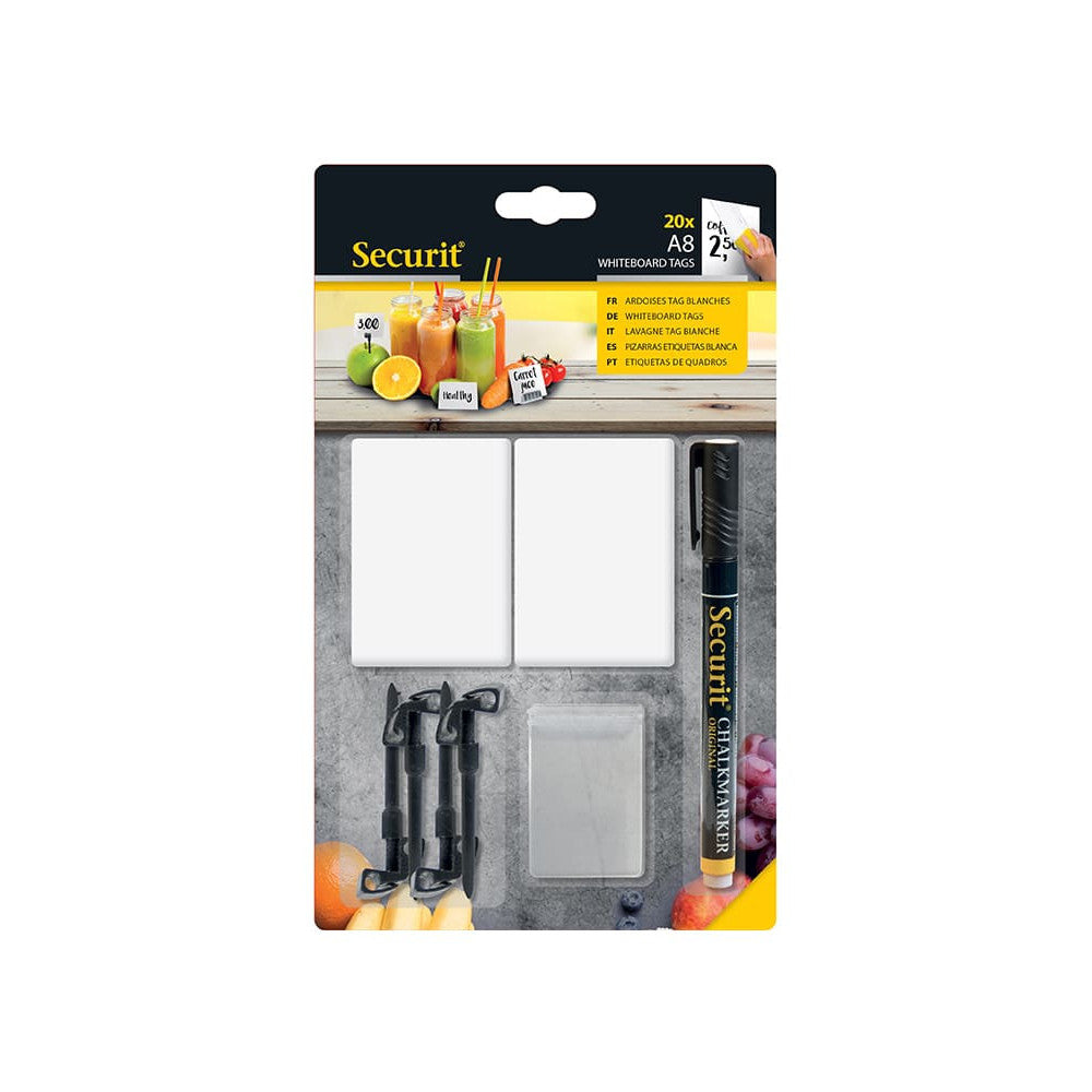 Weisse mini Kreidetafeln im A8 Format zum Beschriften von Lebensmitteln, Getränken und vieles mehr mittels unseren dunklen Securit® Kreidemarker.