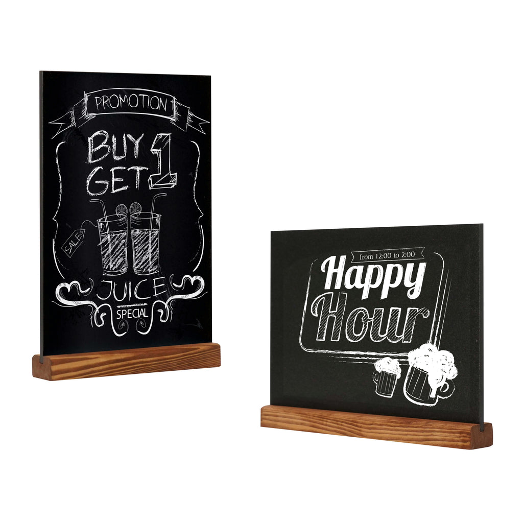 Unsere Tischkreidetafeln mit Holzbasis sind die ideale Lösung für Restaurants, Cafés, Bars oder Events, wenn du deine Botschaften elegant und wirkungsvoll präsentieren möchtest. Sie vereinen schlichtes Design mit praktischer Handhabung und setzen deine Informationen perfekt in Szene.